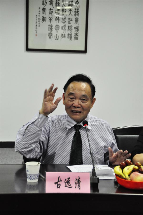 掌声过后,古远清教授接过话筒,一开篇便称自己是“老而不古,古而不老”,以幽默俏皮的方式拉开了本次沙龙的序幕。随后古教授提出,世上有四类朋友:高级而有趣的,高级而无趣的,低级而有趣的,低级而无趣的,而余光中正属于高级而有趣的一类,大赞余光中老先生的人格魅力和艺术成就。他认为,余光中的文体形态是“诗文双绝”,在翻译方面的成就堪比大陆钱钟书,并对余光中的作品特点及主要成就着重展开陈述。古教授还带领着同学们一起诵读了余光中的“拜托”,在同学们激情澎湃的朗读中,本次沙龙也被推向了高潮。接近尾声之时,古教授与现场的同学们进行了互动,围绕如何评价余光中进行了热烈讨论。