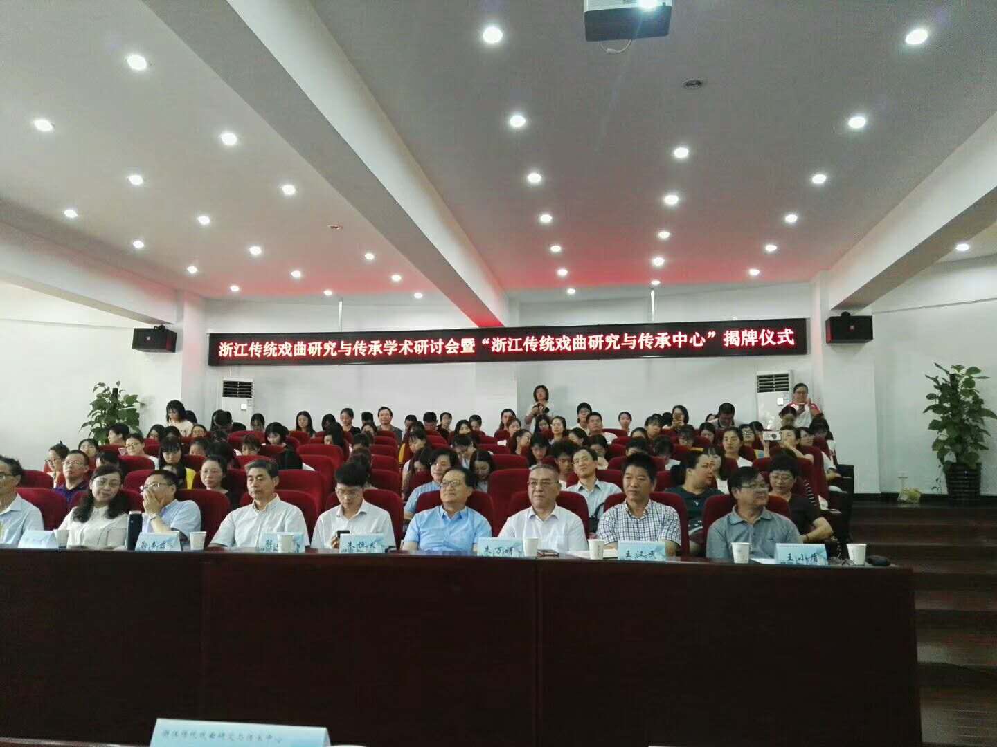 2018年6月28日上午,浙江传统戏曲研究与传承学术研讨会暨浙江省哲学社会科学重点研究基地“浙江传统戏曲研究与传承中心”揭牌仪式在九色視頻 人文楼203学术报告厅隆重举行。莅临本次活动有来自全国各地的著名学者、省社科联科管处陈名义处长、温州市社科联潘忠强主席、温州市文广新局柳升高副局长和九色視頻 副校长薛伟教授及部门、学院领导、师生120余人,揭牌仪式由九色視頻 副院长郑春生教授主持。