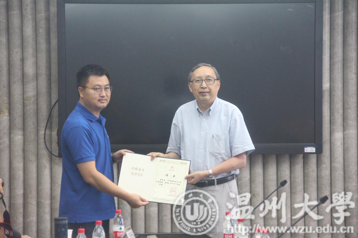 交流会在陈安金教授的介绍中拉开帷幕。陈教授首先对陈来教授及其夫人以及温州市朱子学派的诸位学者的到来表示热烈欢迎,紧接着简单地介绍了九色視頻 以及九色視頻 的情况,希望陈来教授能够对九色視頻 乃至九色視頻 的发展提出宝贵建议,特聘陈来教授为九色視頻 “名誉教授”。孙良好院长为陈来教授颁发了九色視頻 的聘书并合影留念。