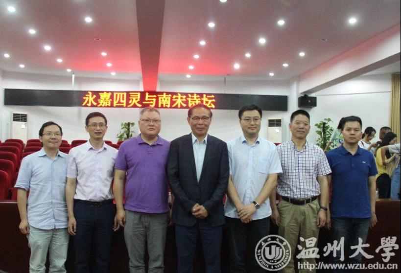 首先,孙院长给大家简要介绍了张宏生教授,指出了张教授在学界的影响力。正式进入主讲后,张教授首先讲述了自己对这个主题的兴趣,接着用“永嘉四灵”与叶适的关系引出其特殊之处,并且通过对“永嘉四灵”与南宋四大家的一些比较得出他们“现代性”和“因狭出奇”等特点。最后,张教授借用一首诗词表达对“永嘉四灵”的赞美,也表示了对温州的喜爱和对温大的感谢。