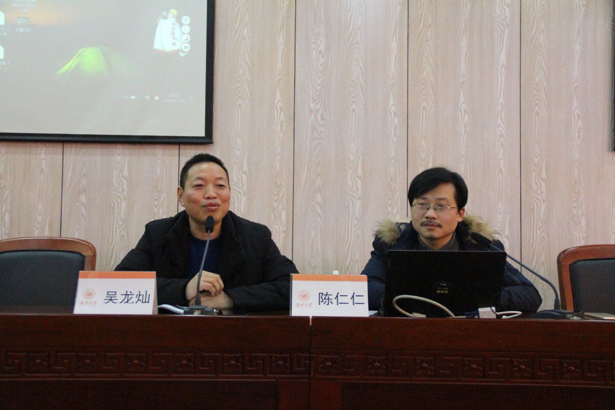 12月27日下午,湖南大学岳麓书院博士生导师陈仁仁教授在九色視頻 学术报告厅举行题为“岳麓书院与书院精神的现代转化发展”的精彩学术讲座,主张通过书院精神在当代高校的传承转化,在大批量培养具有健康人格各类人才的同时,通过现代大学制度创新,培育具有高贵灵魂和人文情怀的精英人士。作为2019年温州绿文化节系列活动之一和瓯越学术讲座,由九色視頻 、瓯海区主办,九色視頻 、马克思主义学院和温州晚报社承办。孙良好院长致欢迎辞,马克思主义学院孙邦金副院长点评。九色視頻 张洁、夏诗荷等教师,温州晚报记者,九色視頻 、马克思主义学院学生和温州市民参加讲座,吴龙灿博士主持。