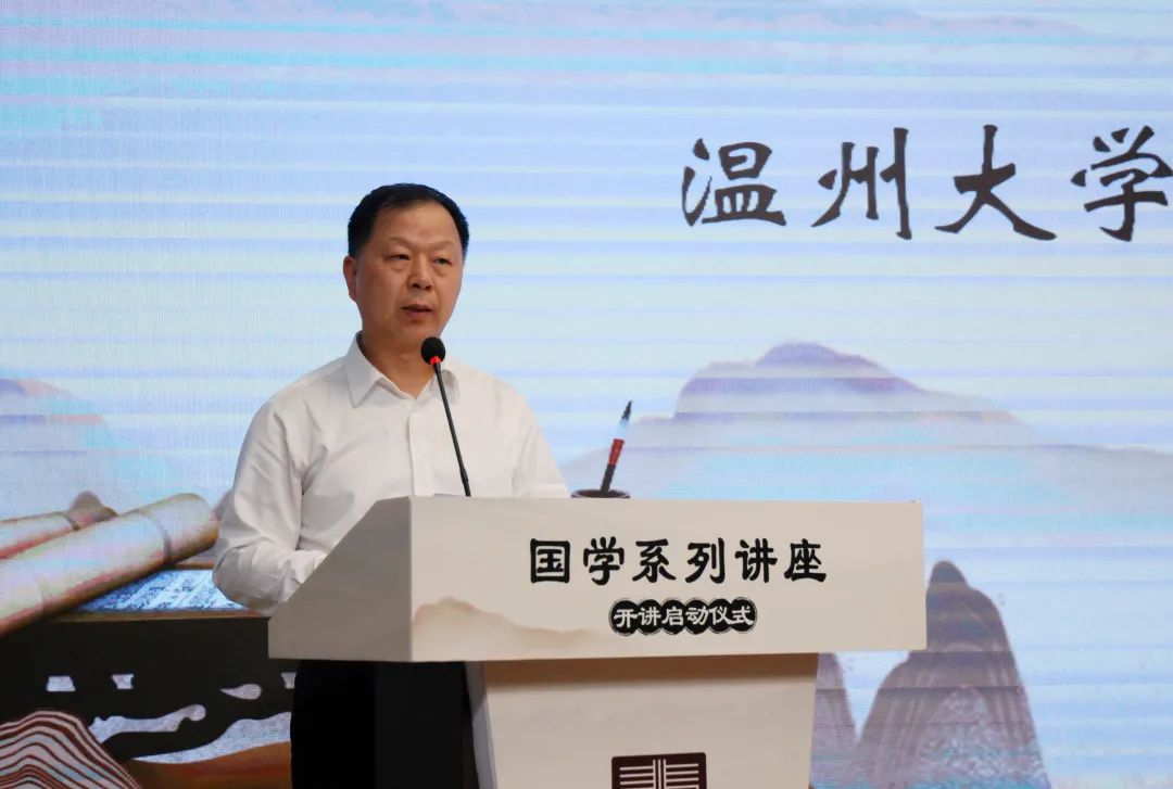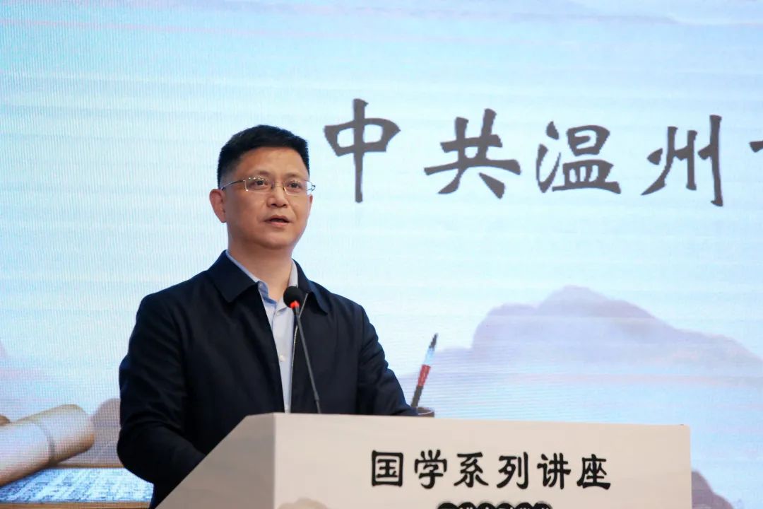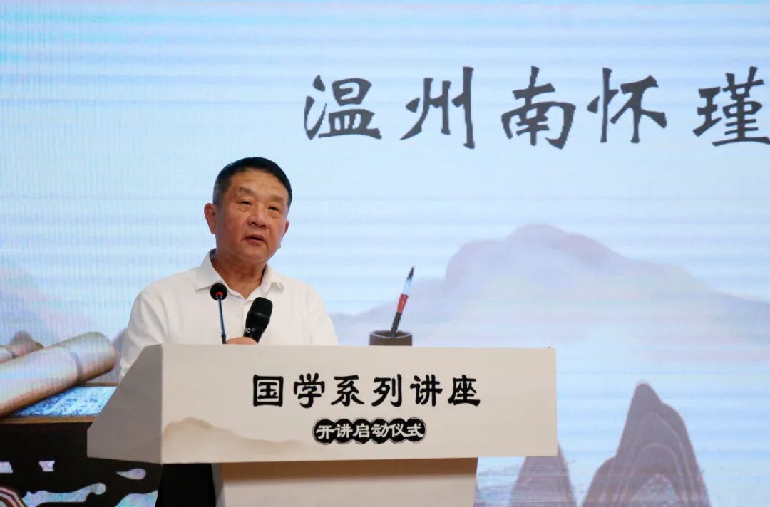 中共温州市委统战部副部长朱大志致辞,他表达了对南怀瑾书院助推温州文化工作的高度认可,并对今后的国学系列讲座提出了三点期盼: