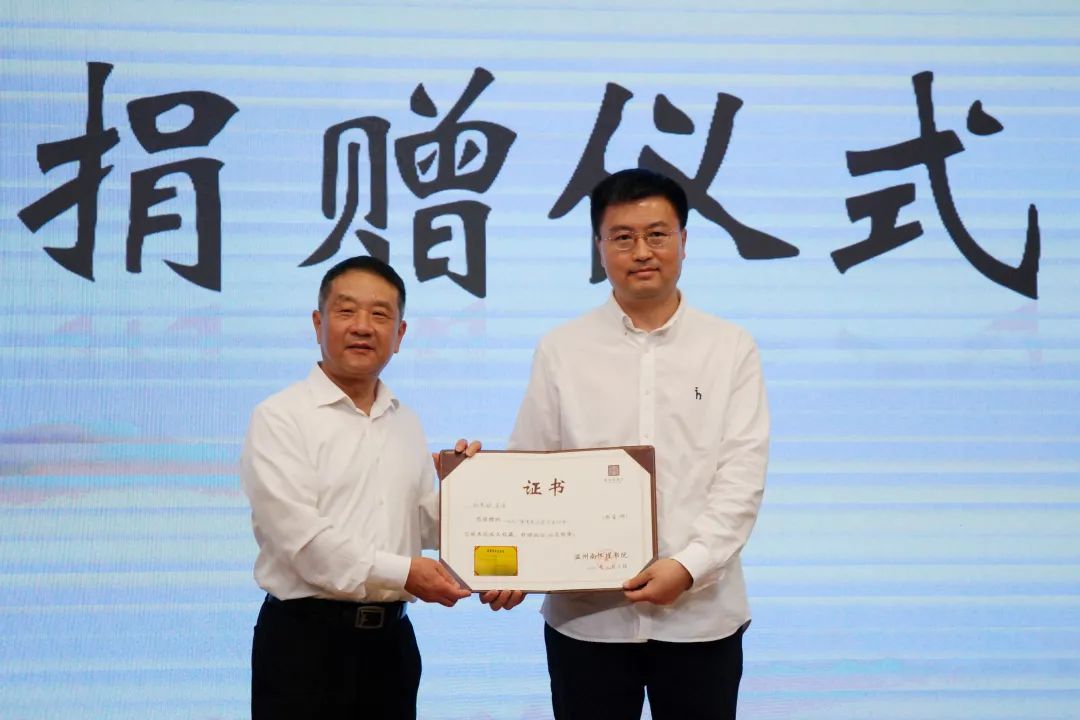 孙良好院长在杭州大学读研期间,曾获光华奖学金。该奖学金是由南怀瑾先生发起并设立的,旨在奖励各知名高校的优秀学子。仪式上,孙院长特将光华奖学金证书捐赠于书院,执行院长吴东为孙院长颁发收藏证书。