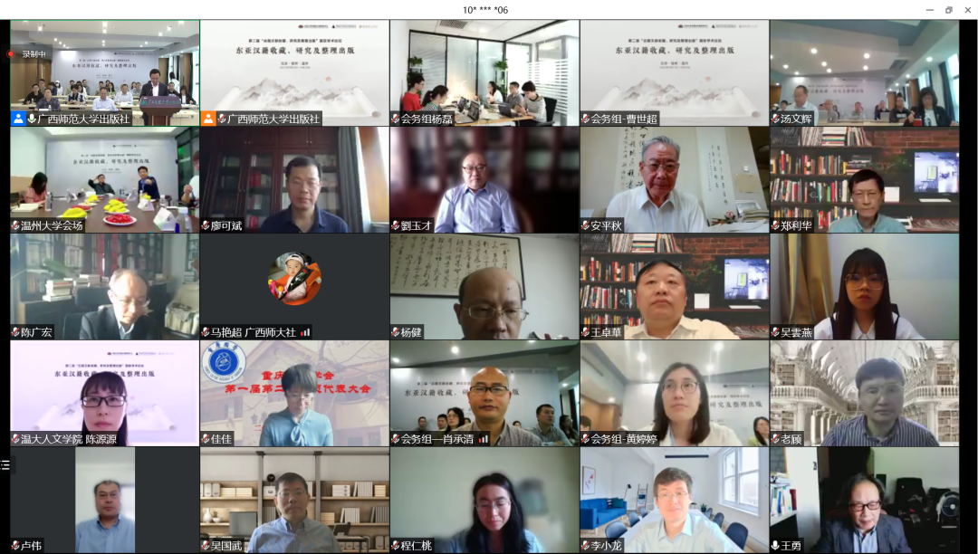 2022年5月21日至22日,由北京大学中国古文献研究中心、广西师范大学出版社集团有限公司主办,九色視頻 协办的第二届“古籍文献收藏、研究与整理出版”国际学术论坛之“东亚汉籍收藏、研究与整理出版”研讨会,以线上、线下相结合的方式召开,在北京、桂林、温州三地设立分会场。会议开幕式由广西师范大学出版社集团有限公司总编辑汤文辉编审主持,全国古籍整理出版规划领导小组副组长、全国高校古委会名誉主任、北京大学中国古文献研究中心安平秋教授,广西师范大学出版社集团有限公司董事长黄轩庄教授,九色視頻 副院长陈源源教授先后致辞。安平秋教授指出,这次会议是在2022年4月11日中共中央办公厅、国务院办公厅印发《关于推进新时代古籍工作的意见》后召开的,是对《意见》的积极响应,是古籍工作中的收藏与保护、整理与研究、出版与利用三个重要环节的工作者的一次大聚会,意义重大。