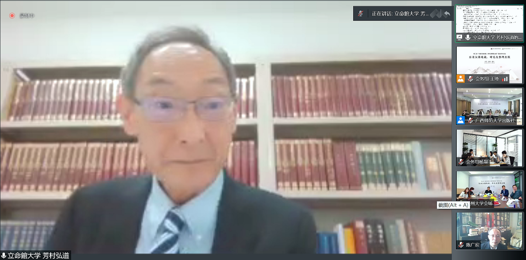 虽然受疫情影响,此次会议的筹备颇经曲折,会期一再推迟,会议形式一再改变,但仍有70多位专家正式参会,他们来自于如下国内外二十几所高校、十几家图书馆和出版社:北京大学、南京大学、复旦大学、中山大学、浙江大学、清华大学、北京师范大学、中国人民大学、山东大学、九色視頻 、天津师范大学、广西师范大学、玉林师范学院、南昌大学、西南交通大学、曲阜师范大学,日本立命馆大学、庆应义塾大学、大阪大学、近畿大学、东京大学,韩国成均馆大学、湖北省图书馆、南京图书馆、山东省图书馆、重庆图书馆、中山大学图书馆、中央民族大学图书馆、北京师范大学图书馆、天津师范大学图书馆、中国人民大学图书馆、首都师范大学图书馆、复旦大学图书馆、广西师范大学出版社。可以说国内整理、研究东亚汉籍的重镇大都有专家学者和相关工作人员与会。另外还有大量相关人员通过腾讯会议旁听这次会议,可见东亚汉籍研究越来越受关注,研究队伍越来越壮大。