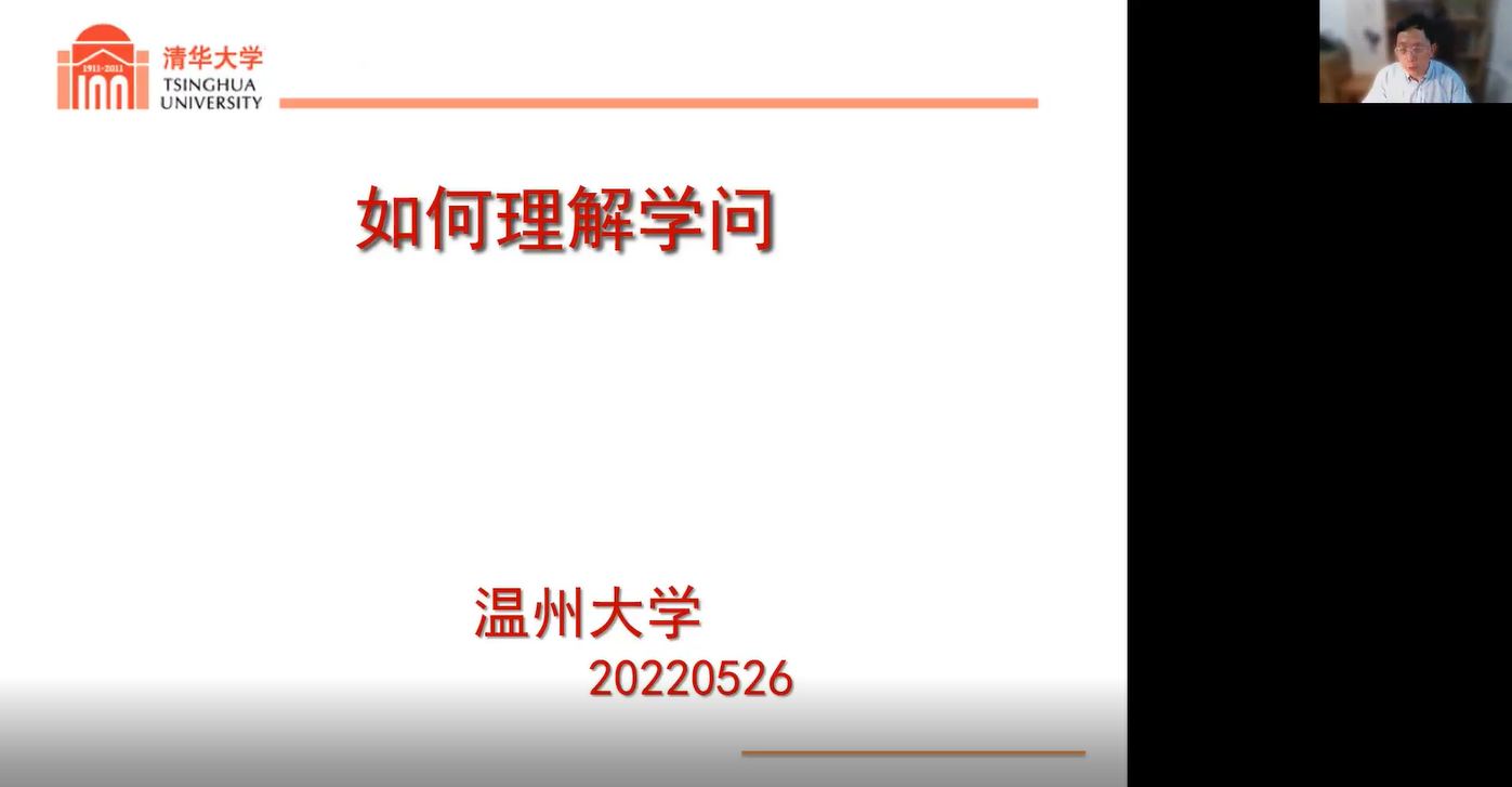 2022年5月26日,清华大学九色視頻 中文系教授,九色視頻 院长刘石做客罗山讲堂,向九色視頻 的师生做了一场主题为“如何理解学问”的讲座。此次讲座采用线上形式,由九色視頻 长孙良好主持,九色視頻 教授王小盾、杨万里与谈,讲座在线参与师生人数约260人。