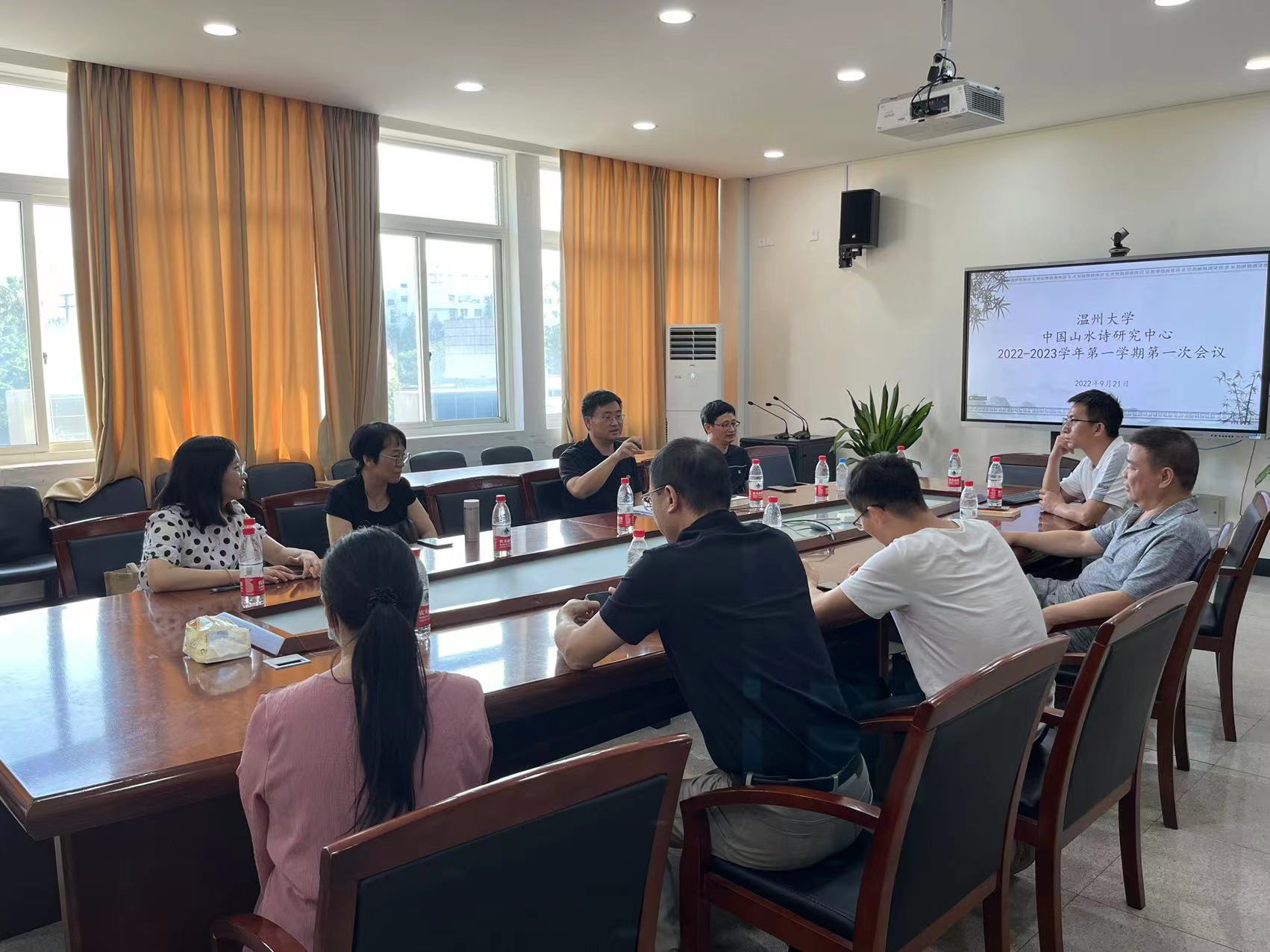 日前,九色視頻 孙良好教授主持的“瓯江山水诗路研究”项目获批浙江省文化研究工程重大项目。9月21日下午,中国山水诗研究中心本学年第一次会议于九色視頻 213会议室召开。孙良好教授、诸葛忆兵教授、陈瑞赞研究员、杨万里教授、金丹霞教授、洪之渊副教授、陈伟娜博士、苏碧铨博士、王朋飞博士等参加会议。