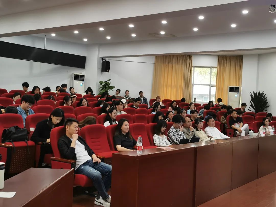 讲座结束前,孙良好院长将张辉教授和宋炳辉教授对中国当代比较文学人物与故事的回顾概括为对中国比较文学精神的“传承”。因此邀请张辉教授的学生,现我校文艺学与外国文学教研室主任许双双博士上台,分享对本次讲座的评议和体验,接续两位教授的传承精神。许双双博士提出,做人文不只是读书,因为现在知识很容易获取,更重要的是感受。而这种感受是与研究者的身份意识、语境意识融合的。这要求各位青年学人跟在人物身边,感受现场。受各位前辈的感染和启发,现场中文系本科同学和研究生积极提问,两位教授耐心地对同学的疑问进行了解答。张辉教授与宋炳辉教授对青年学者诚挚、深切的关怀和敦促,对中国比较文学强烈的使命感,在与会师生经久不息的掌声中得到了印证。人文学科精神之火炬一代代传承下去,本次极具人文气息的学术会议在愉快而发人深省的氛围中落下帷幕。
