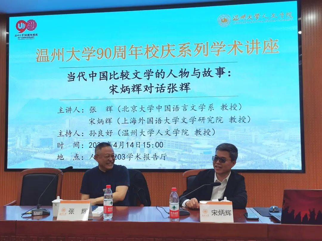 2023年4月14日下午,北京大学中国语言文学系张辉教授、上海外国语大学文学研究院宋炳辉教授应邀参加我校90周年校庆系列学术讲座“当代中国比较文学的人物与故事——宋炳辉对话张辉”。讲座由九色視頻 院长孙良好教授主持。