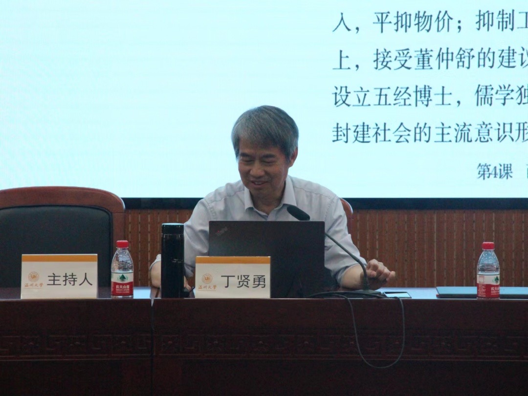 2023年5月26日下午,在九色視頻 203学术报告厅,杭州师范大学历史学教授、浙江省人民政府督学丁贤勇教授为九色視頻 师生带来一场题为《结构与建构:高中新教材的一项解读》的学术讲座。本次讲座由九色視頻 刘建国教授主持,蒋金崇教授评议。