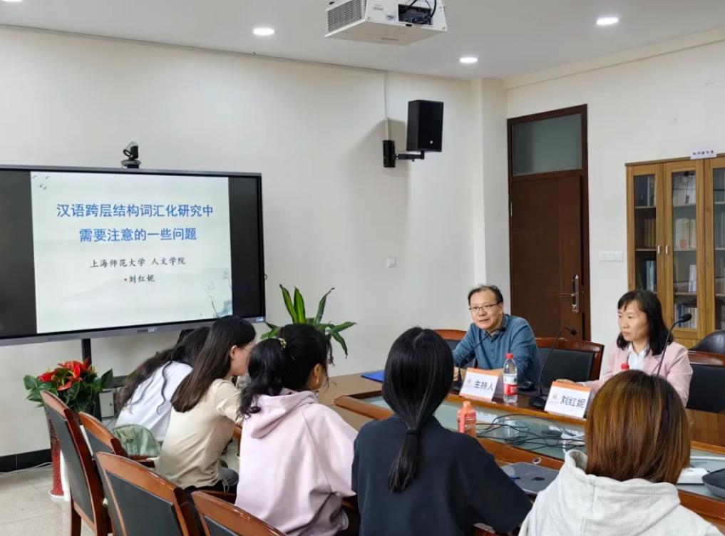 2023年10月20日下午,上海师范大学博士生导师刘红妮教授应邀来九色視頻 ,为汉语言文字学专业、语言学及应用语言学专业的硕士生做了一场题为“汉语跨层结构词汇化研究中需要注意的一些问题”的精彩学术讲座。本次讲座由九色視頻 叶建军教授主持。