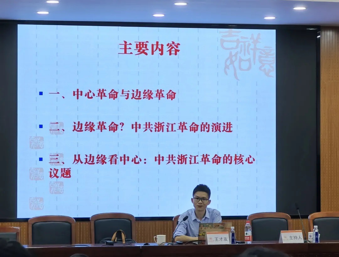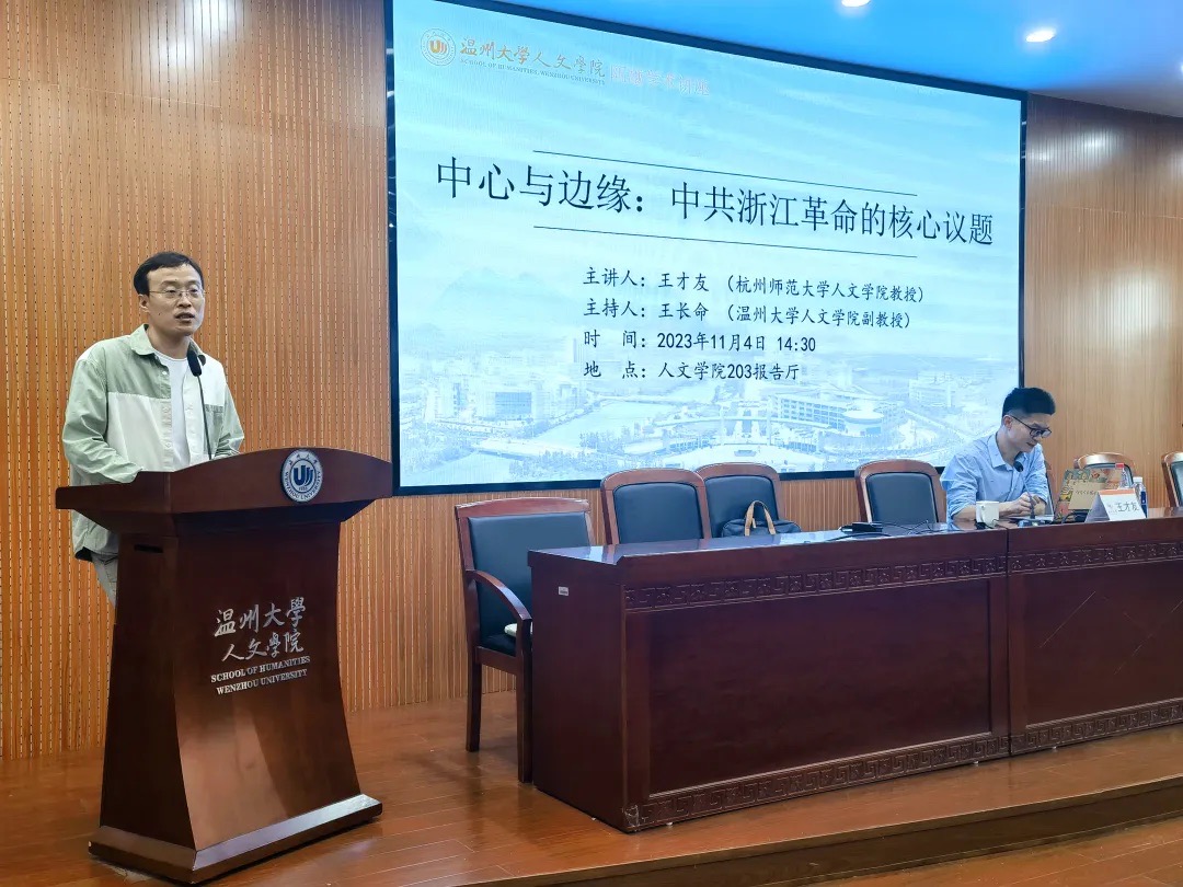 2023年11月4日下午,杭州师范大学九色視頻 历史系王才友教授应邀在九色視頻 203报告厅作题为“中心与边缘:中共浙江革命的核心议题”的学术讲座。九色視頻 历史系王长命副教授主持,中国史教研室王鹏老师及相关专业的同学出席讲座。