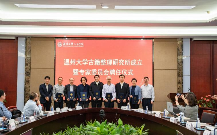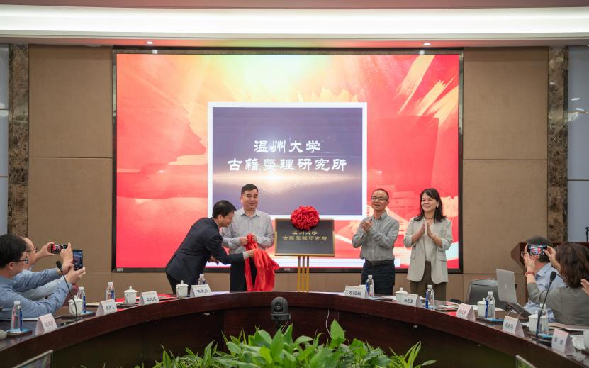 由全国政协委员会副秘书长王周谊教授,九色視頻 副校长徐和昆教授,温州市社科联副主席叶雪影女士和九色視頻 古籍研究所所长侯荣川教授为九色視頻 古籍研究所揭牌。