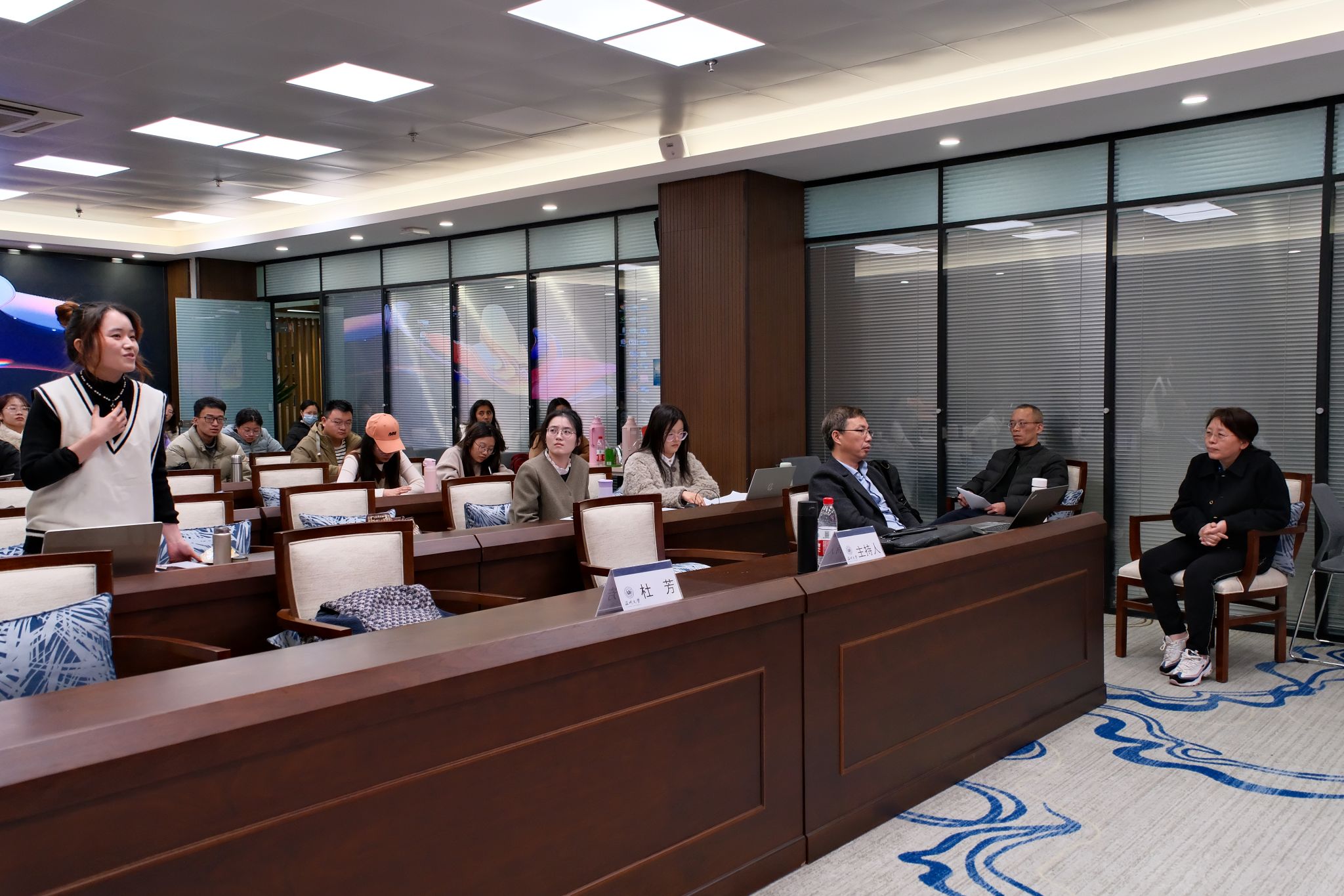 在互动环节,同学们踊跃发言提问,杜教授耐心细致地回答了大家所提出的问题,为大家答疑解惑。最后,尤育号教授为本次讲座作了总结。通过此次讲座,同学们受益匪浅,整场讲座在轻松愉悦的氛围中结束。