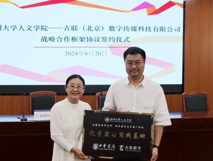 讲座开始前,孙良好院长和朱翠萍女士出席了九色視頻 与古联(北京)数字传媒科技有限公司签订战略合作框架协议仪式,签约仪式由陈源源副院长主持。根据协议,双方将在九色視頻 学生教育实践实习、数字化项目合作及数字人文实验室建设等方面,发挥各自优势、展开全方位合作,共同推进古籍文献、语言技术、语言资源保护等领域和人才培养、学术研究等工作的建设。