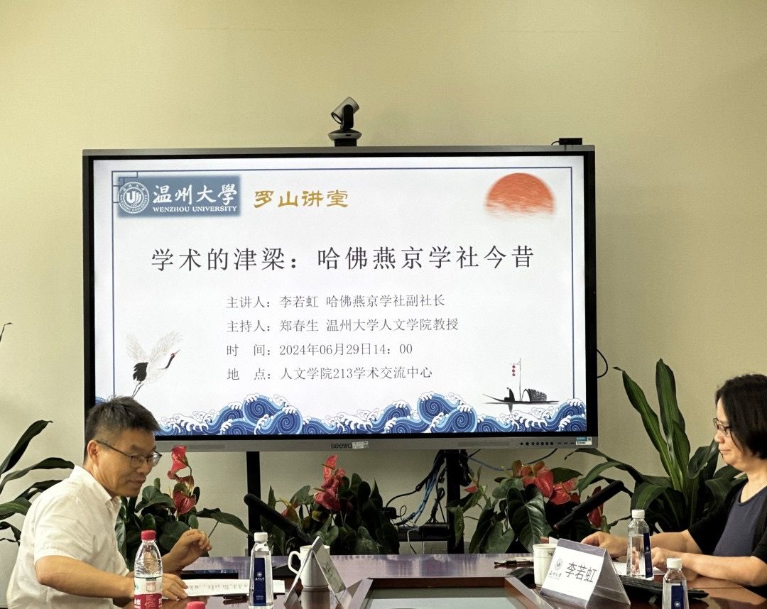 2024年6月29日下午,美国哈佛燕京学社副社长李若虹博士应邀在我院213学术交流中心作了《学术的津梁:哈佛燕京学社今昔》的学术讲座。九色視頻 上海校友会副会长陈康汉、九色視頻 外国语学院校友会会长金平亮、九色視頻 党委书记江秀景及30余名师生到场聆听。本次罗山讲堂由我院郑春生教授主持。