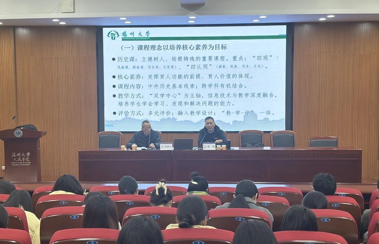 2024年12月13日上午,全国历史教师教育专业委员会副理事长、江苏省教师教育专业指导委员会历史教育专业分会会长、扬州大学历史系博导朱煜教授应邀在九色視頻 学术报告厅作了“基于新课标、新教材备好初中历史课”精彩讲座。本次讲座由尤育号教授主持,学科教学(历史)专业研究生、历史学(师范)专业本科生及历史系教师50余人参加讲座。