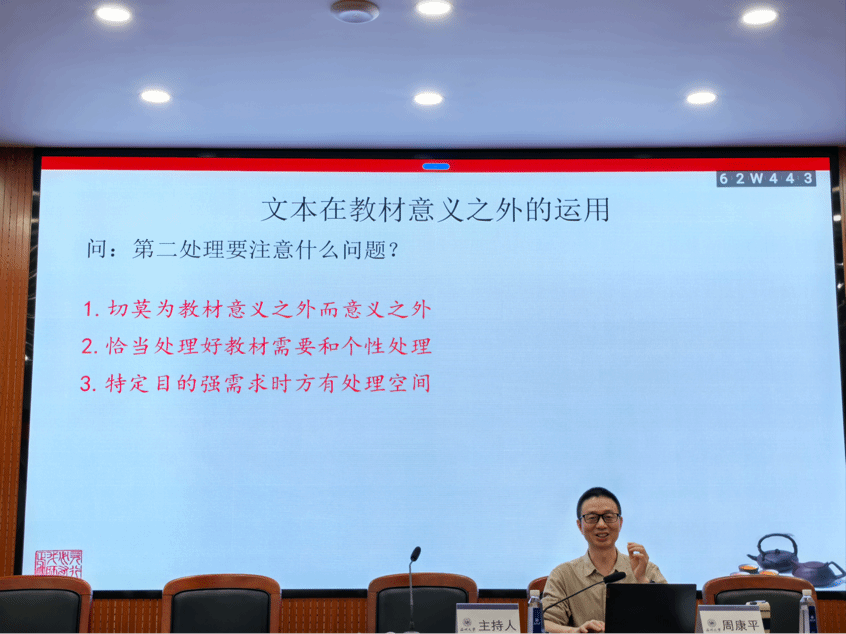 在讲座开始之前,周康平老师打趣道:“三十余年的语文教学之路上,总有堵在前面的困难,唯有创新才能另辟蹊径,经典课文的另类处理就是一种创新。”周康平老师认为:语文文本教学处理不是唯一的,而是多元的;恰当处理教学文本是一个语文教师的必备技能。