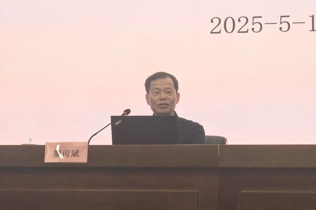 2025年5月18日晚,湖南大学文学院廖可斌教授应邀在我校育英图书馆学术报告厅,作了一场题为“《牡丹亭》何以成为经典”的专题讲座。本次讲座由孙良好教授主持,侯荣川教授参与探讨。本次讲座吸引了校内外百余名师生前来聆听。