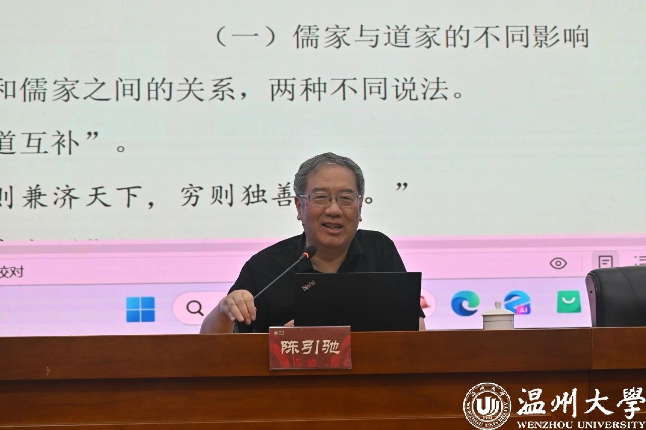 2025年5月22日晚,复旦大学中文系陈引驰教授应邀在我校育英图书馆报告厅,作了一场题为“庄子的思想及现代启示”的专题讲座。本次讲座由孙良好教授主持,杨万里教授参与探讨。本次讲座吸引了校内外百余名师生前来聆听。