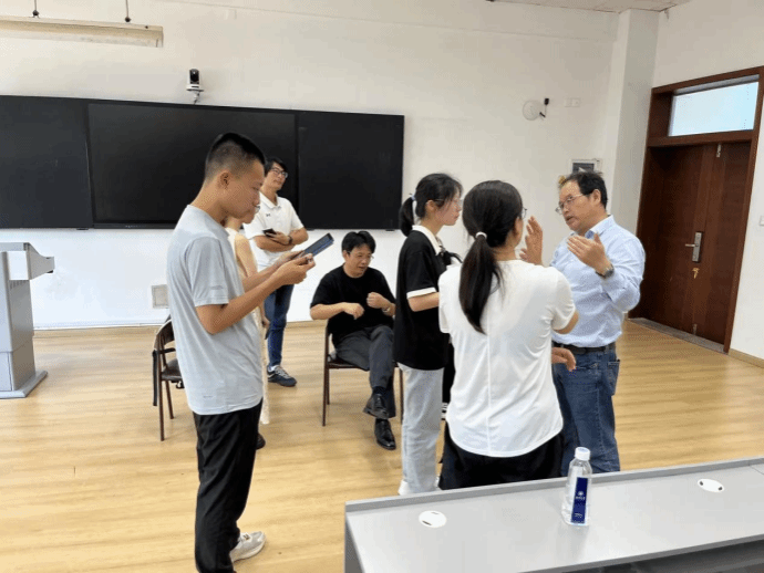 提问环节,马筱菡、邵诺妍等同学就故事叙事的逻辑与推理、诗歌的生成机制、如何看待成规、如何展开故事叙事等问题向两位教授提问。两位教授一一进行详细解答,并赠予书籍。讲座结束后,数位意犹未尽的同学们围到教授身旁,进行了更深入细致的讨论。