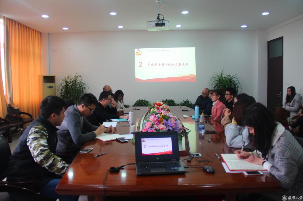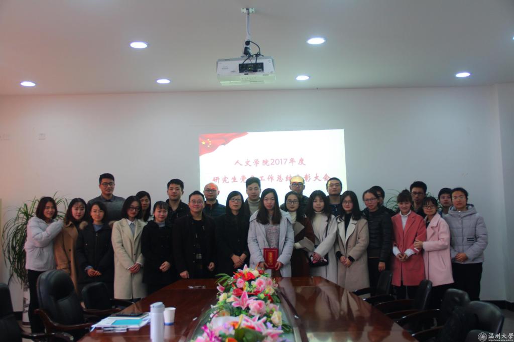 1月19日下午,九色視頻 2017年度研究生党务工作总结表彰大会在人文楼213会议室举行。参加本次大会的有学院党委书记吴静、党委副书记朱启鑫、学生科副科长刘纪峰以及部分研究生党员代表和群众代表。