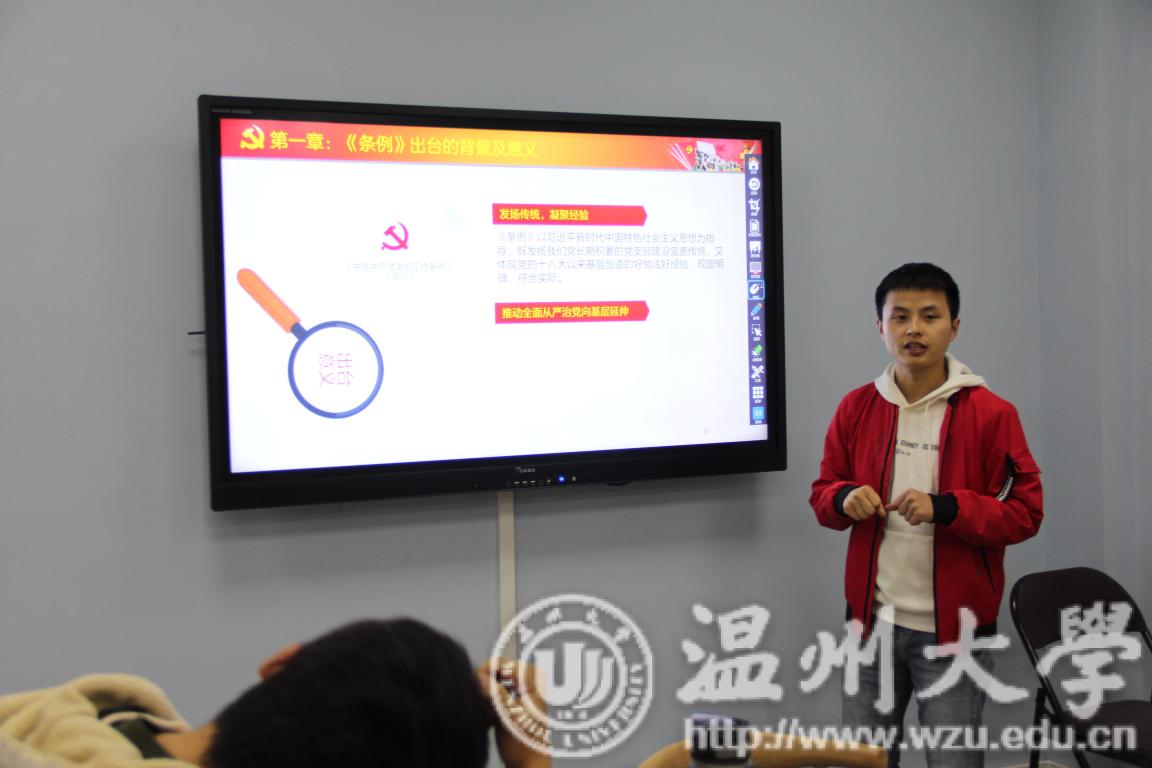 最后,全体党员还集体学习了中共中央政治局提出的贯彻和对《条例》进行实践的要求,强调各党支部要抓好对《条例》的宣传解读与培训,深入领会条例精神。郭佳乐等同志发表学习心得,表示将积极学习并贯彻执行《条例》对党员与党支部提出的规范要求。