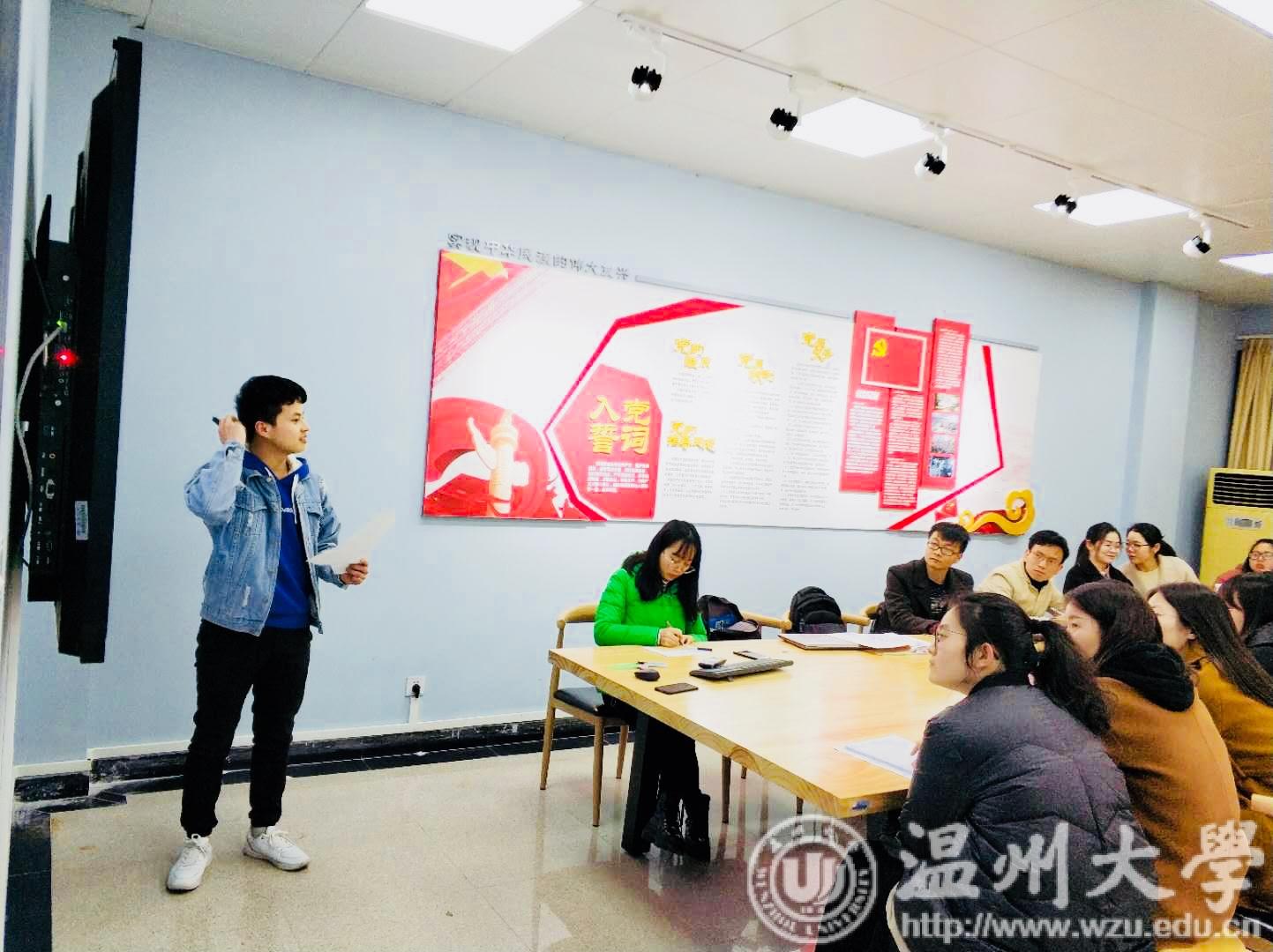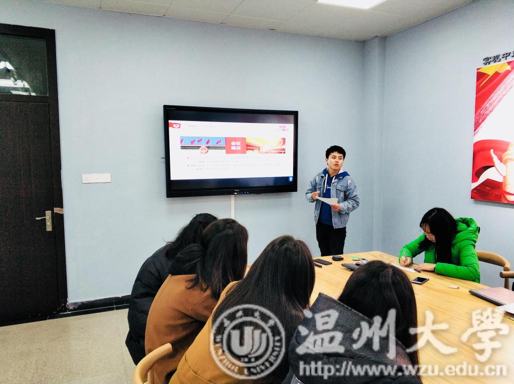2019年3月24日晚18点,九色視頻 学生第一党支部于党员之家开展全国两会政府工作报告微党课学习,本次学习由支部书记李林军主持,宣传委员曾文斌进行宣讲。