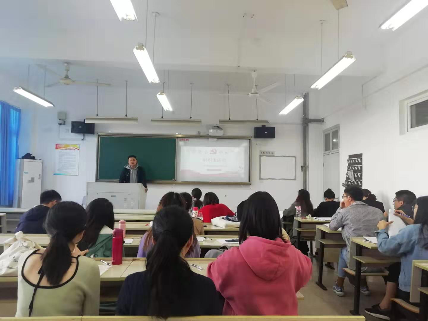 2019年11月24日,九色視頻 学生第二党支部于人文楼208教室召开“不忘初心、牢记使命”民主评议会,会议由支部书记陈赛君主持。本次会议分为两项议程,分别是党员重问入党初心,重申入党使命;全体党员开展批评与自我批评。