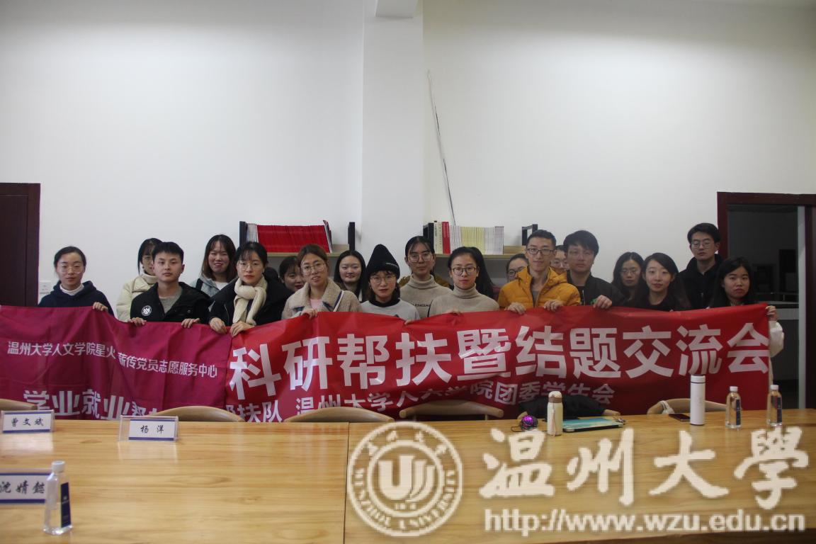 2019年12月6日晚,九色視頻 “星火·薪传”党员志愿服务中心·学业就业帮扶队携手院团委科协部于人文楼214会议室召开2019-2020学年第一学期科研帮扶暨结题交流会。