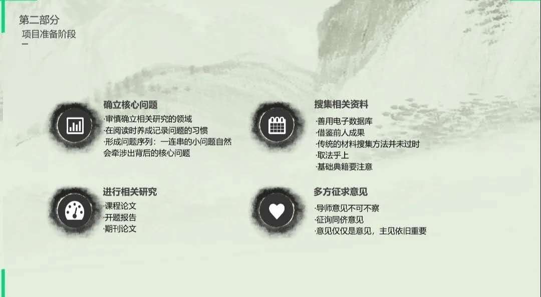 本次会议分为六个流程:立项介绍、立项流程介绍、立项注意事项、往年立项通过情况、经验交流与分享、提问环节。在经验交流与分享环节,2018级中国古代文学专业的马东旭结合自己的科研经历就如何确立核心问题,如何搜集相关资料等方面分享经验;2018级语言学及应用语言学专业的武远佳立项准备和立项申请两个方面介绍自己的经验2019级文化创意学崔梦鸽谈及科研立项的契机是自己之前感兴趣的相关问题,后来经过查找资料和社会调研发现此问题有深入研究的必要性和可行性。在最后的互动提问环节中,同学们针对自己的疑问踊跃发言,经验分享者们积极地回答了同学们的问题。