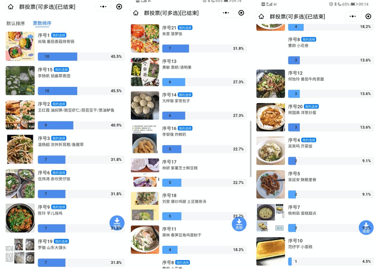 支部在4月14日对党员同志们所做的美食组织了评选活动,22名支部成员纷纷根据自己的喜好,选出了自己心仪的美食,评选结果将在“九色視頻 ”微信公众号上展示,尚璐同志的番茄香菇排骨锅最受欢迎,李扬帆同志的鼠曲草青团和王红霞同志所做的油焖笋也得到大家的广泛认可。