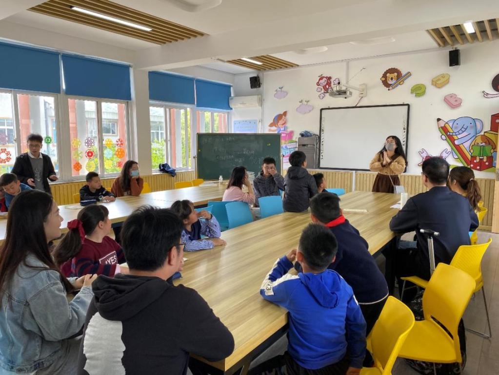当明媚的阳光照耀丽岙华侨小学,4月10日下午,来自九色視頻 学生第三党支部的党员们怀揣着热情与活力,为孩子们带来思维的训练和肢体的锻炼。