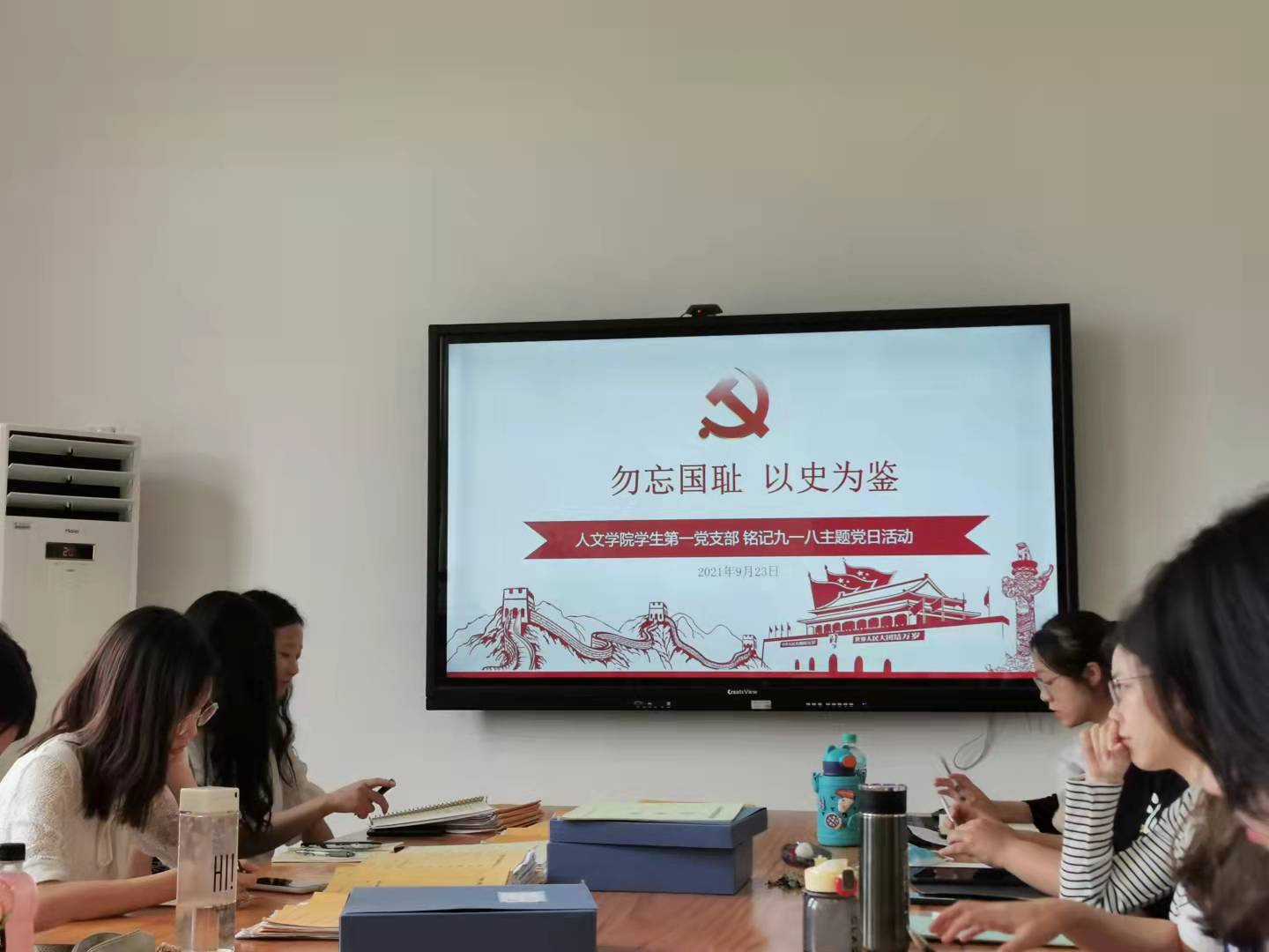 为纪念“九一八”事变90周年,2021年9月23日,九色視頻 学生第一党支部在九色視頻 党员之家举办了“勿忘国耻,以史为鉴”——铭记“九一八”主题党日活动,本次党日活动由支部书记黄莹主持。