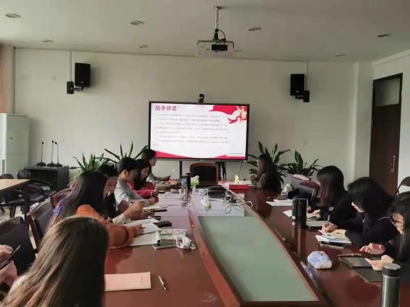 为缅怀即将到来的抗美援朝纪念日,2021年10月21日,九色視頻 第一党支部结合近期热映的爱国主义教育电影《长津湖》,在九色視頻 213会议室举办了纪念抗美援朝运动党课学习暨主题党日活动,本次党日活动由支部书记黄莹主持。