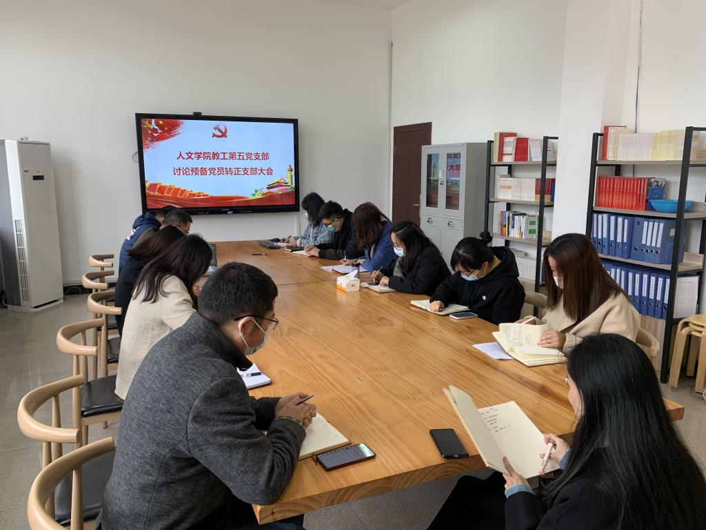 根据学校“学全会精神·当为民先锋”主题党日活动学习要求,结合支部实际,2021年12月14日上午,九色視頻 教工第五党支部在人文楼党员之家召开了预备党员转正大会暨党的十九届六中全会精神专题学习会,现场气氛庄重而热烈。