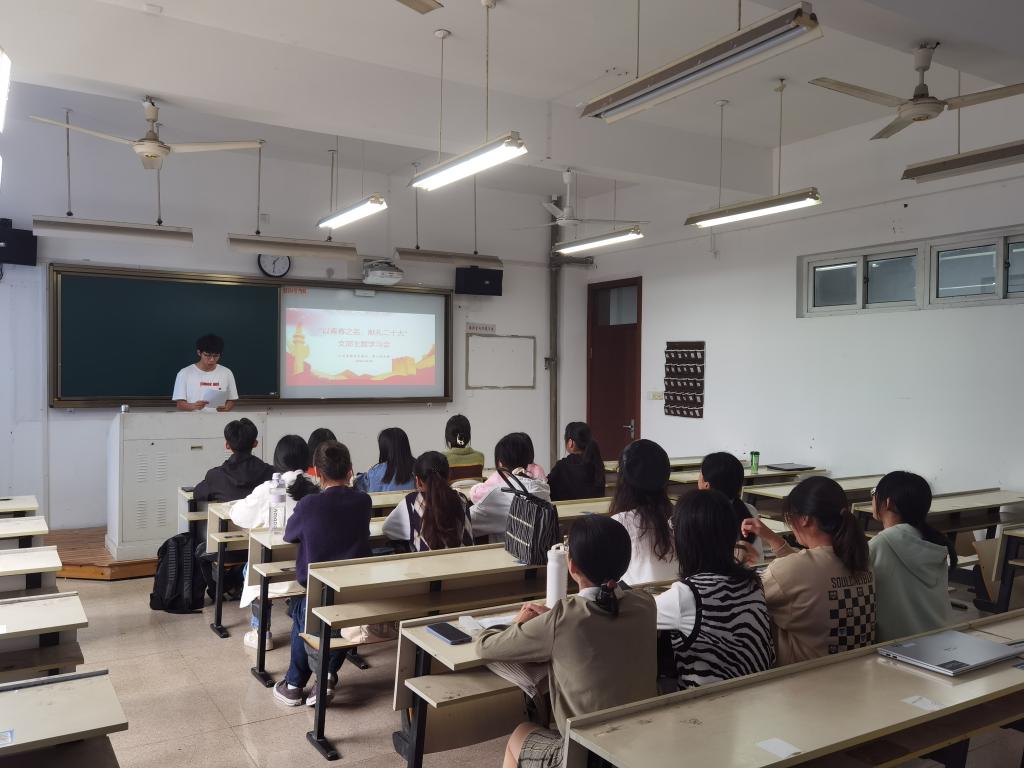 2022年10月26日,为庆祝党的二十大胜利闭幕,贯彻落实党的二十大精神,九色視頻 学生第四、第八党支部举办了以“以青春之名,献礼二十大”为主题的支部党日活动暨学习会。本次活动由朱宁恺同志主持,共有18名同志参加,包括20级全体党员同志和发展对象。
