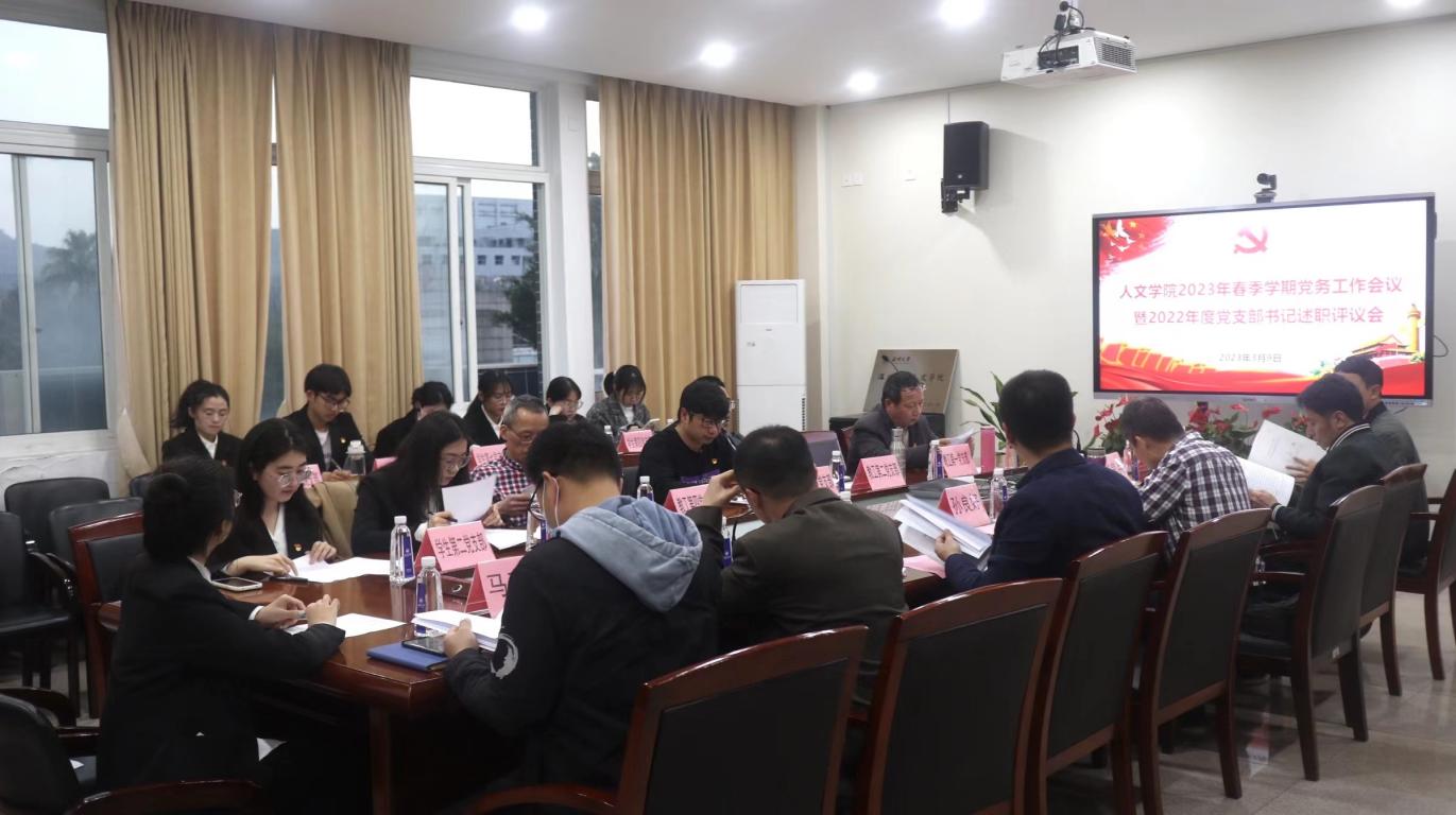 为深入学习贯彻党的二十大精神,落实党建工作责任制,推进基层党建工作,3月9日晚,九色視頻 2022年度党支部书记述职评议会暨新学期党务工作会议在人文楼213会议室召开,总结盘点2022年党支部书记履职情况,全面部署新学期学院党建工作。学院全体党委班子成员、师生党支部书记参加会议,副书记魏一同志主持会议。