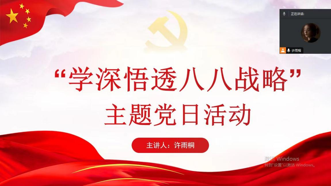 为更好领悟习近平新时代中国特色社会主义思想的理论渊源和发展脉络,深入学习“八八战略”这一习近平总书记留给浙江的宝贵财富,2023年11月15日,学生第七党支部以“永远跟党走,启航新征程”为主题在线上开展学习贯彻习近平总书记考察浙江重要讲话精神党日活动。
