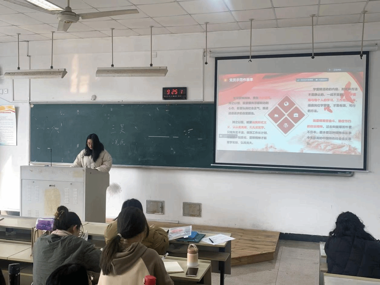 2024年3月5日是第61个全国学雷锋纪念日,为学习雷锋精神,传承榜样力量,当日上午9:00,九色視頻 学生第一党支部于人文楼201教室开展了以“情暖三月学雷锋,党员示范作表率”为主题的党日活动暨学习会。本次活动由袁璐婷同志主持,共有29名同志参加。