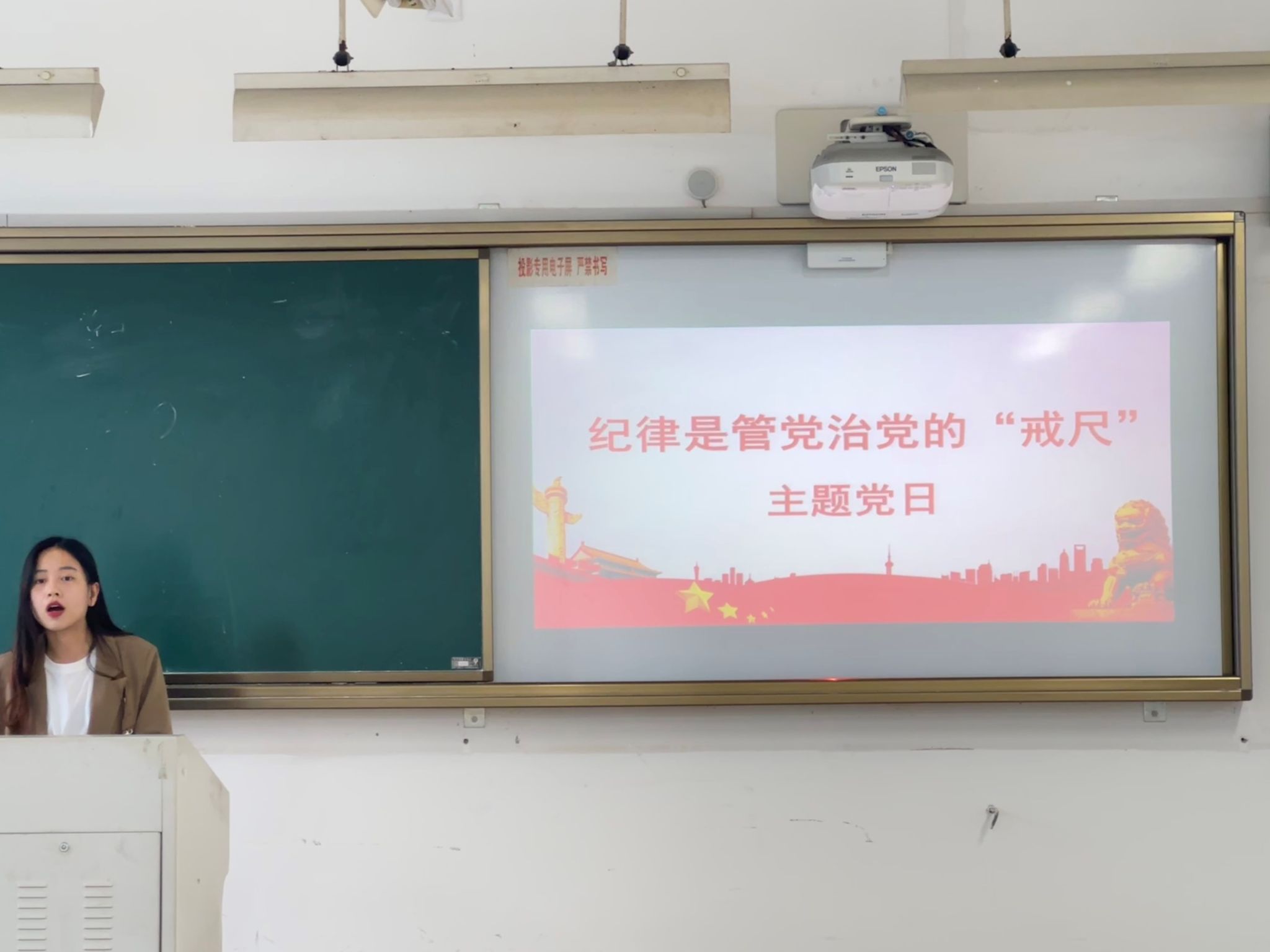 活动伊始,学生党支部副书记朱红从党的发展历史、党面临的问题、新时代伟大事业对党更高的要求三方面来阐述党纪严明的重要性,并表示纪律严明不仅是党的光荣传统和独特优势,也是全面从严治党、推进党的自我革命的现实需要,强调了党的纪律是党的生命线,是维护党的团结统一、保持党的先进性和纯洁性的重要保证。