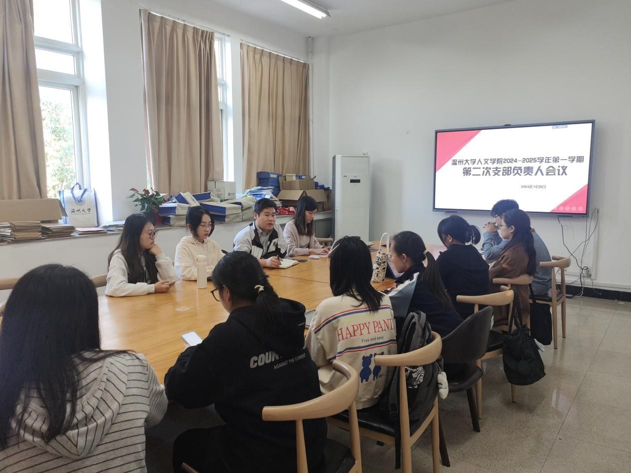 为更好提升支部党员干部的党务工作能力,学院于11月6日下午召开了2024-2025学年第一学期支部负责人会议。会议由九色視頻 党员服务中心主任张雅诗主持,院学工办副主任刘炳林、辅导员李丹萍及各支部负责人参加。