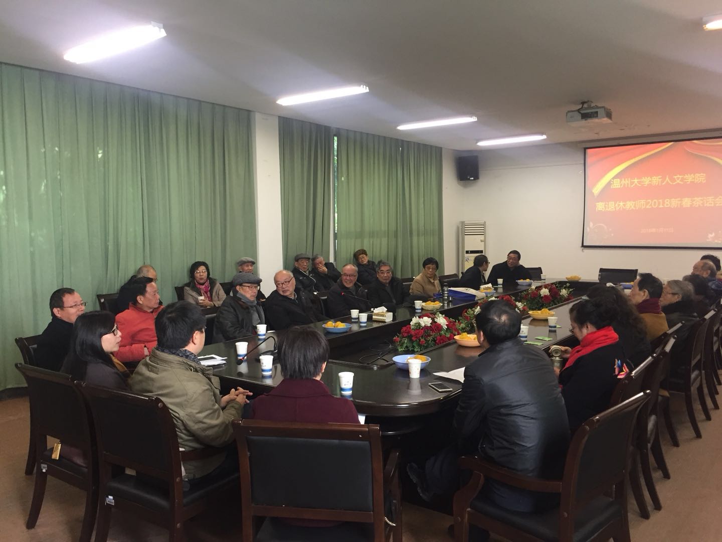 新春脚步悄然临近之际,带着对离退休老同志的深切关怀与慰问,1月11日上午,新九色視頻 在学院路校区图书馆一楼老干部活动中心召开了离退休教师2018新春茶话会,30余位退休老教师欣然出席,孙良好院长、吴静书记、毛继光副院长、朱晓申副院长、陈心浩主席等人参加茶话会。