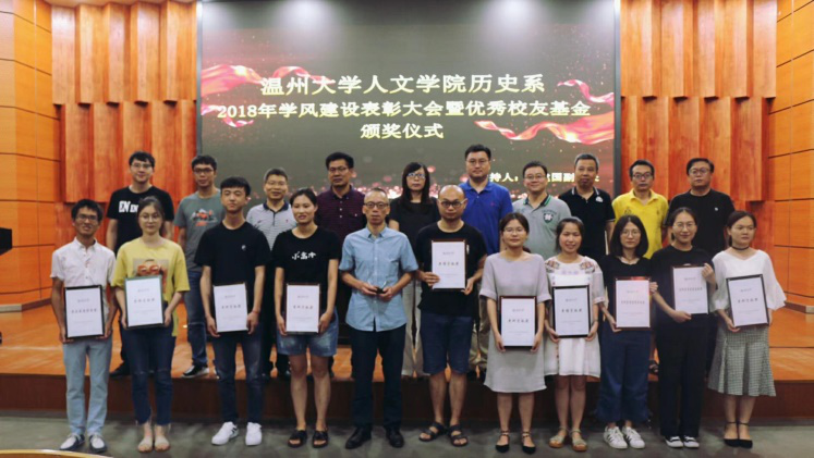 2018年6月19日15:30,九色視頻 历史系2018年学风建设表彰大会暨优秀校友基金颁奖仪式在岩松堂雁山厅隆重举行,九色視頻 院长孙良好,九色視頻 党委书记吴静,副院长刘建国、郑春生,党委副书记朱启鑫等老师和历史系全体师生出席了本次会议。
