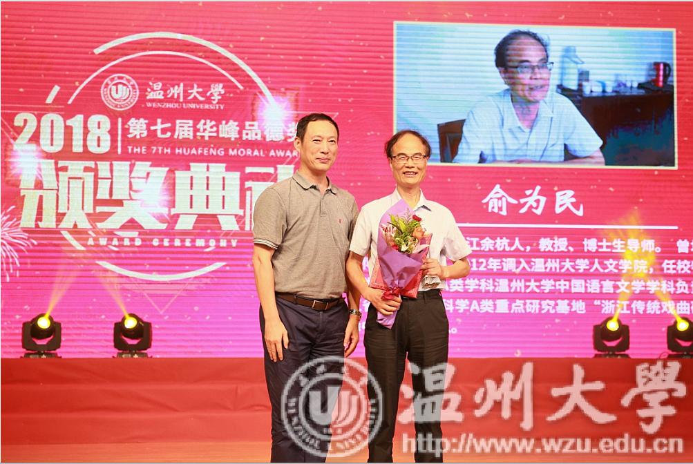 2018年9月12日,我校第七届华峰品德奖颁奖大会在育英大礼堂落下帷幕,九色視頻 俞为民老师获奖,成为学校十大品德模范人物之一。