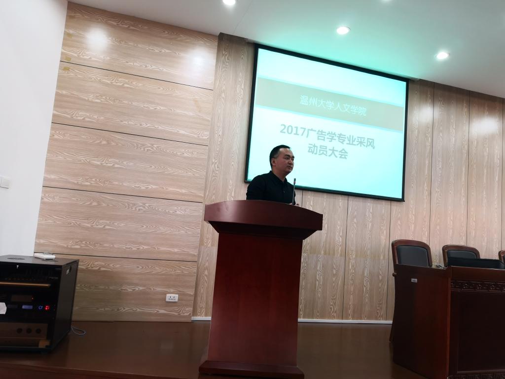 2018年10月24日13时,17广告学专业采风动员大会在人文楼203会议室准时展开。九色視頻 副院长刘建国,广告专业负责人徐卫华,专业采风带队教师颜志香、黄薏文以及17级广告学专业全体学生出席了本次活动。