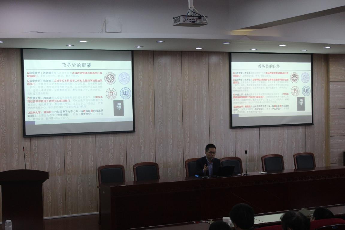11月21日,为推进学校政策法规普及,深入学习学校相关文件精神,服务广大教职员工,九色視頻 特邀请教务处处长余闯,创业人才培养学院副院长胡文超来九色視頻 开展相关政策宣讲。两位同志分别就学校本科教学相关政策、创业教育支持政策等进行细致解读。此次学院邀请学校职能部门负责人深入基层宣讲学校重要政策法规的做法,既有利于学校政策的落地,也为教师们的教学活动和创业教育提供针对性的服务,受到了广大教师的欢迎和好评。