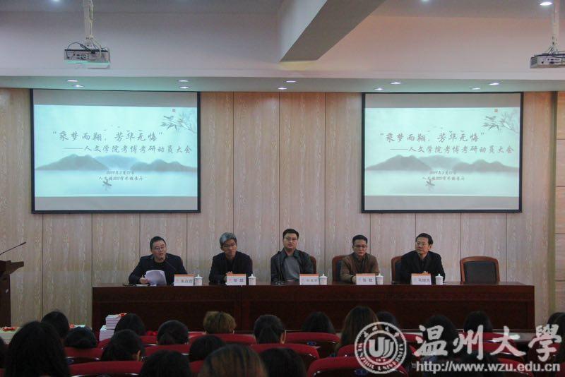 2019年3月13日下午,九色視頻 于人文楼203学术报告厅举办以“乘梦而翔,芳华无悔”为主题的考博考研动员大会。九色視頻 院长孙良好、学生处处长张敏、研究生院副院长邹超、九色視頻 副院长毛继光、九色視頻 党委副书记朱启鑫共同出席本次会议。九色視頻 有考博考研意向的同学们都积极参加本次活动,全场座无虚席。