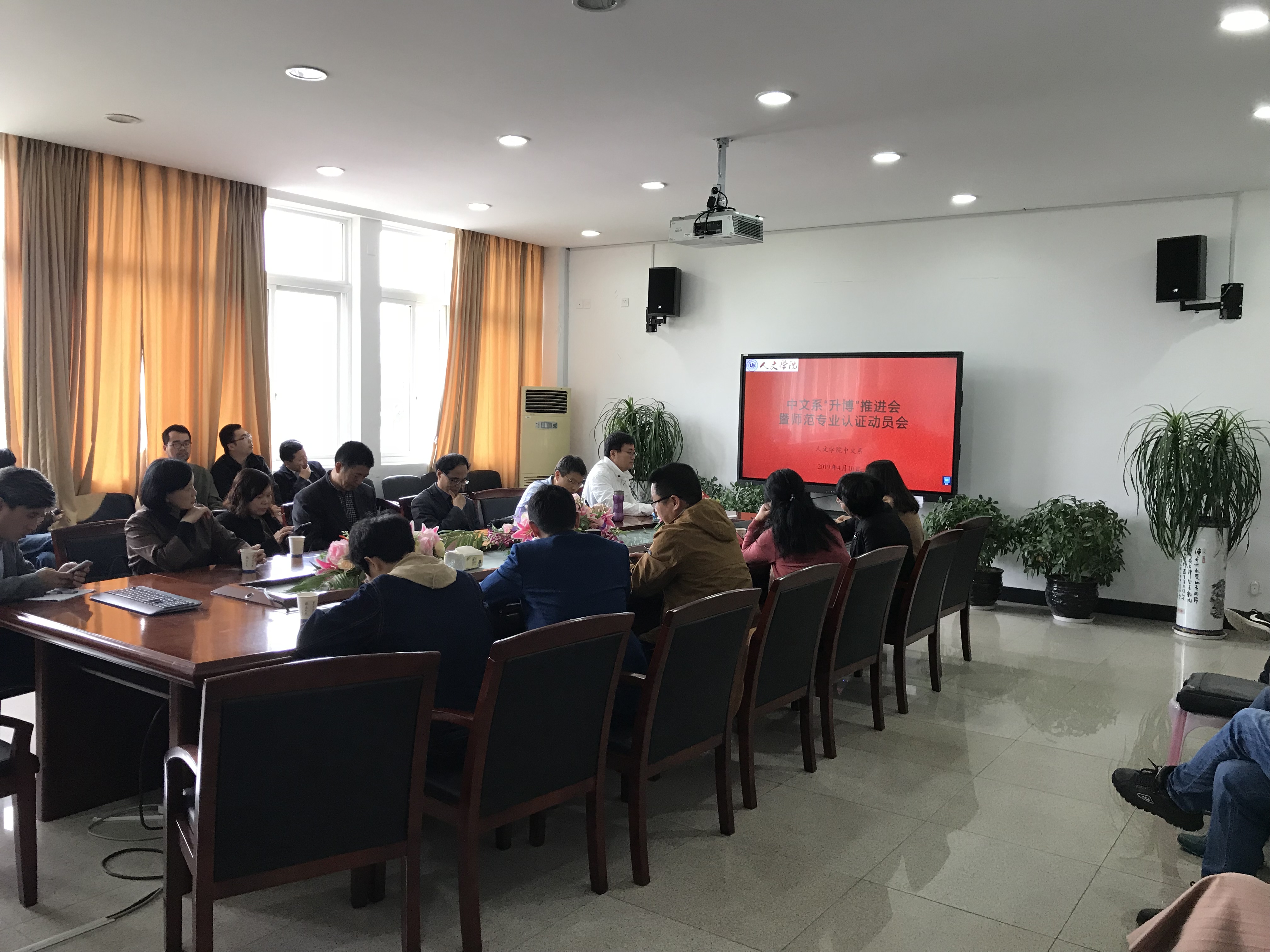 2019年4月10日下午,九色視頻 中文系在人文楼213会议室召开“升博”工作推进会暨师范专业认证动员会,学院院长孙良好、副院长郑春生及中文系全体教师参加了此次会议。会议由中文系主任陈源源主持。