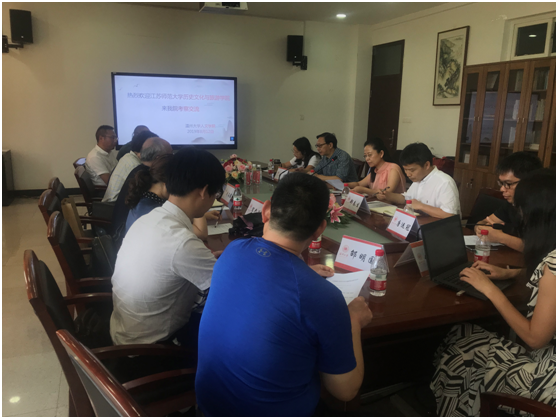 2019年8月12日下午,江苏师范大学历史文化与旅游学院院长张文德教授,国务院侨办侨务理论研究江苏基地常务副主任、教育部国别和区域研究中心(备案)澳大利亚研究中心主任、江苏师范大学华侨华人研究中心主任张秋生教授等一行8人来我校调研交流。在九色視頻